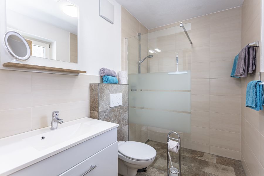 Vorraum, 1 Schlafzimmer für 2 Personen, Wohnraum mit Küchenblock (Backrohr, Kühlschrank, Geschirrspüler, Toaster, Kaffeemaschine, Wasserkocher), großes Bad mit Dusche & WC, Terrasse mit Rattanmöbel, Föhn, Safe, Kabel-TV, W-LAN..
