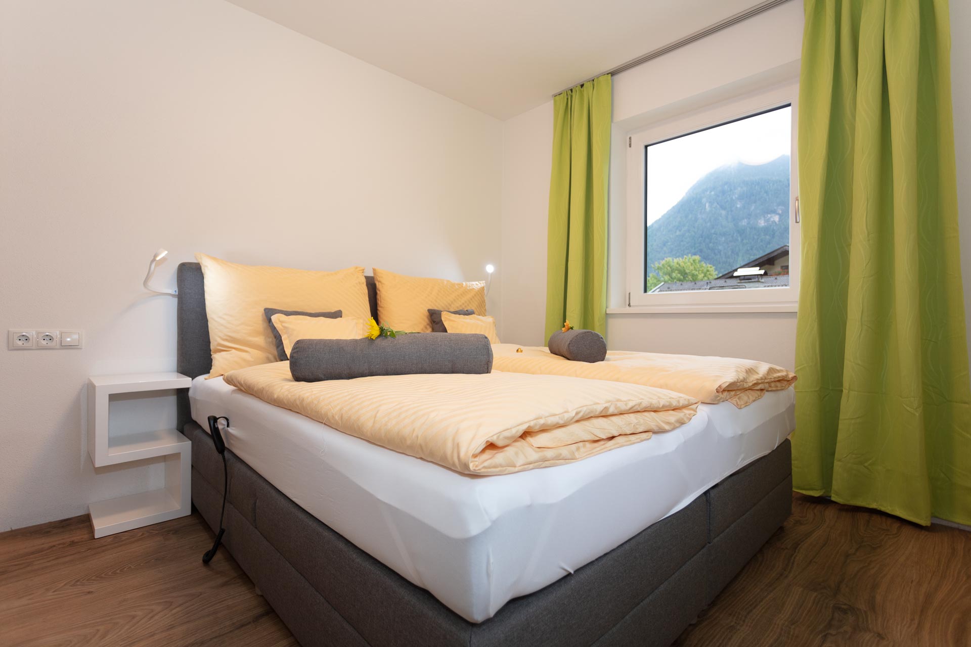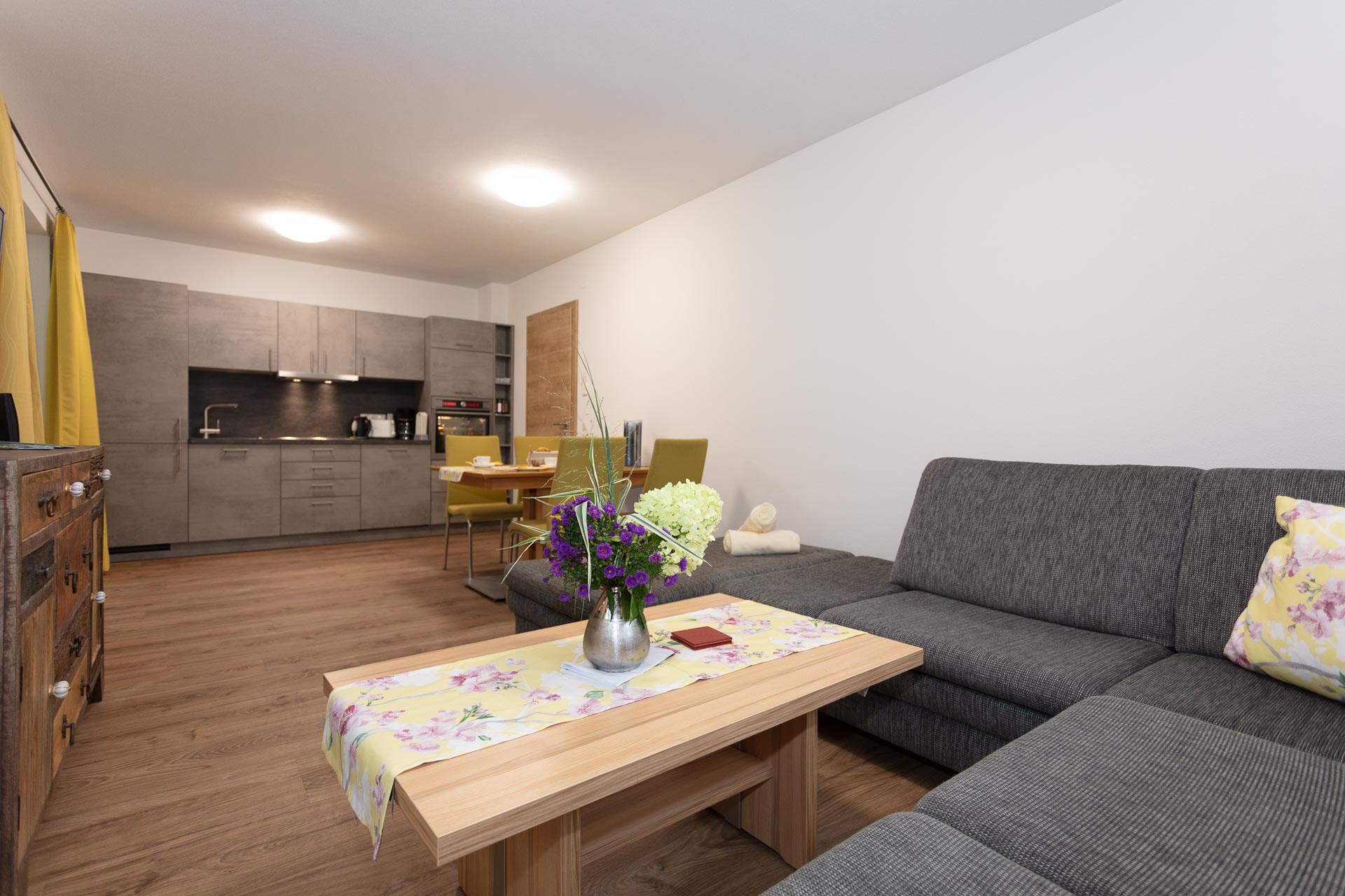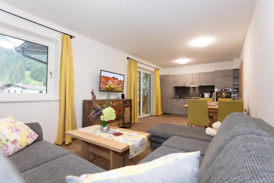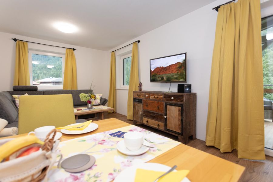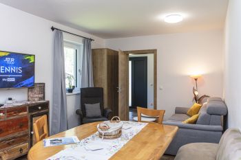 Vorraum, 2 Schlafzimmer, 2 Bäder, ein Wohnzimmer mit Küchenblock (Backrohr, Mikrowelle, Geschirrspüler, Gefrierschrank, Wasserkocher, Eierkocher, Kaffeemaschine usw.), Essecke, große Terrasse, W-LAN, Safe, Kabel-TV, Föhn..